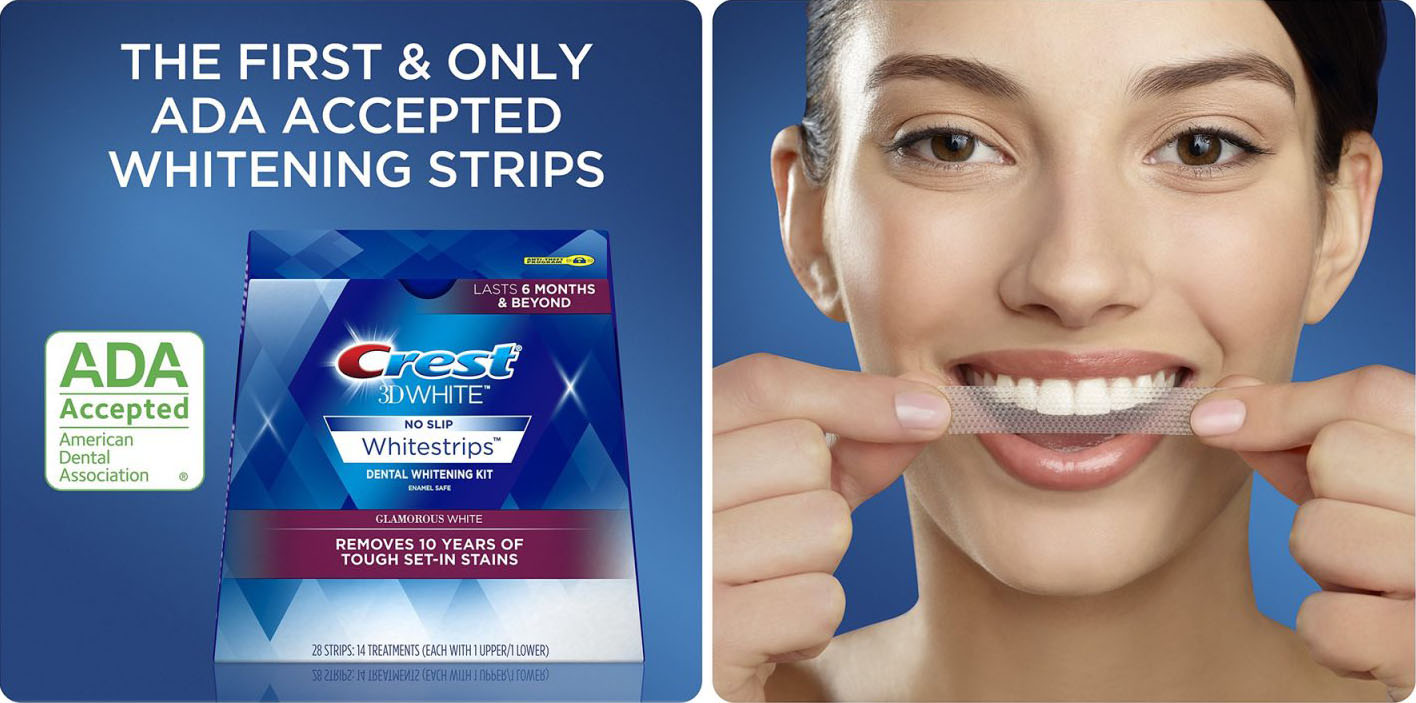 Отбеливание при помощи системы Crest 3D White проводится так же, как и другими полосками – они прикладывают к зубам на определенное время в соответствии с инструкцией. Активное вещество геля – пероксид водорода. В состав полосок также входят ингредиенты, которые эффективно справляются с пятнами и налетом на эмали, при этом продукт остается безопасным для зубов. Компания предлагает следующие виды продукции: