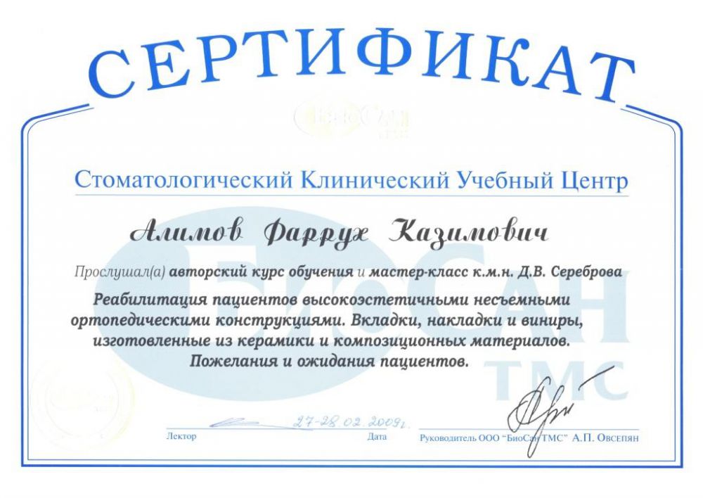 Врач-стоматолог-ортопед, терапевт